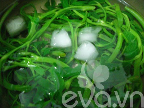 chần qua nước đun sôi rồi thả rau muống vào chậu nước đá. Cách này sẽ